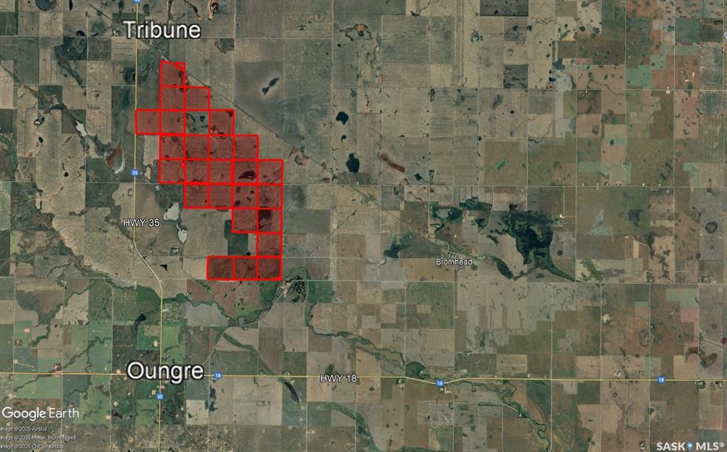 This is a rare opportunity to acquire a premier large-scale grain operation in the heart of southern Saskatchewan. Situated just one and a half miles south of Tribune, this remarkable property includes 25 quarter sections of highly productive farmland, all in a continuous block — a configuration that is exceptionally hard to find in today’s market. The total land base encompasses 3,956.56 acres, and 3,462 cultivated acres from the Sama records. The layout of the farm allows for efficient, uninterrupted farming practices with minimal wasted space, thanks to its large, corner-to-corner fields and excellent access throughout the entire property. The property comes with two bin yards that include 21 grain bins. The bins include a mix of flat-bottom and hopper styles, providing flexibility for storing grain, seed, or fertilizer. This farm is strategically located just 40 miles west of Estevan and 30 miles south of Weyburn, placing it within easy reach of major service centers, grain terminals, and the U.S. border — making logistics and cross-border trade efficient and accessible. The land is currently leased for the 2026 crop season to a strong local operator and is available for the 2027 season. With a total assessed value of $6,182,800 and an exceptionally rare block of 25 quarter sections, this property stands out as a top-tier investment opportunity in Saskatchewan’s farmland market. Whether you are expanding an existing operation or investing in one of the province’s most valuable assets — quality farmland — this is a package that delivers scale, quality, and long-term potential. Contact S/A agent for additional information.