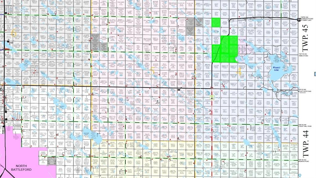 This nine quarter offering of grain farmland is located 32 km northeast of North Battleford. Eight quarters are joined together in a block with the ninth located only a half mile away.