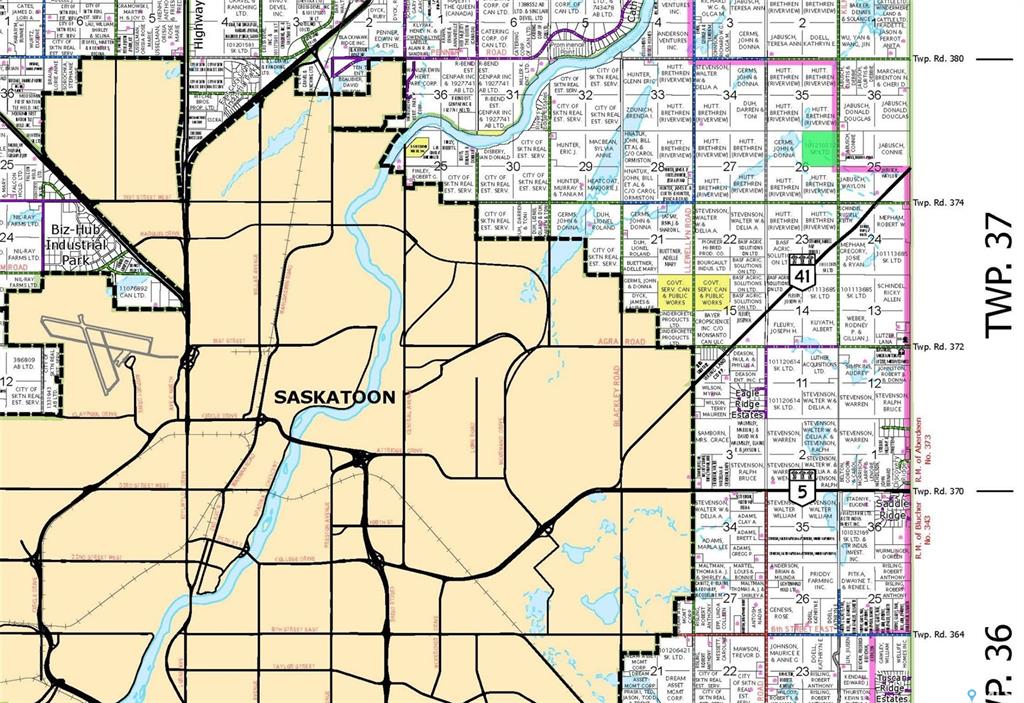 Located approximately 6 miles northeast of Saskatoon near the HWY 5 and 41 junctions, this farmland sits within the P4G area, offering future development potential. Currently rented for the next two years, it provides immediate income opportunities for investors. Don't miss out on this exceptional property!
